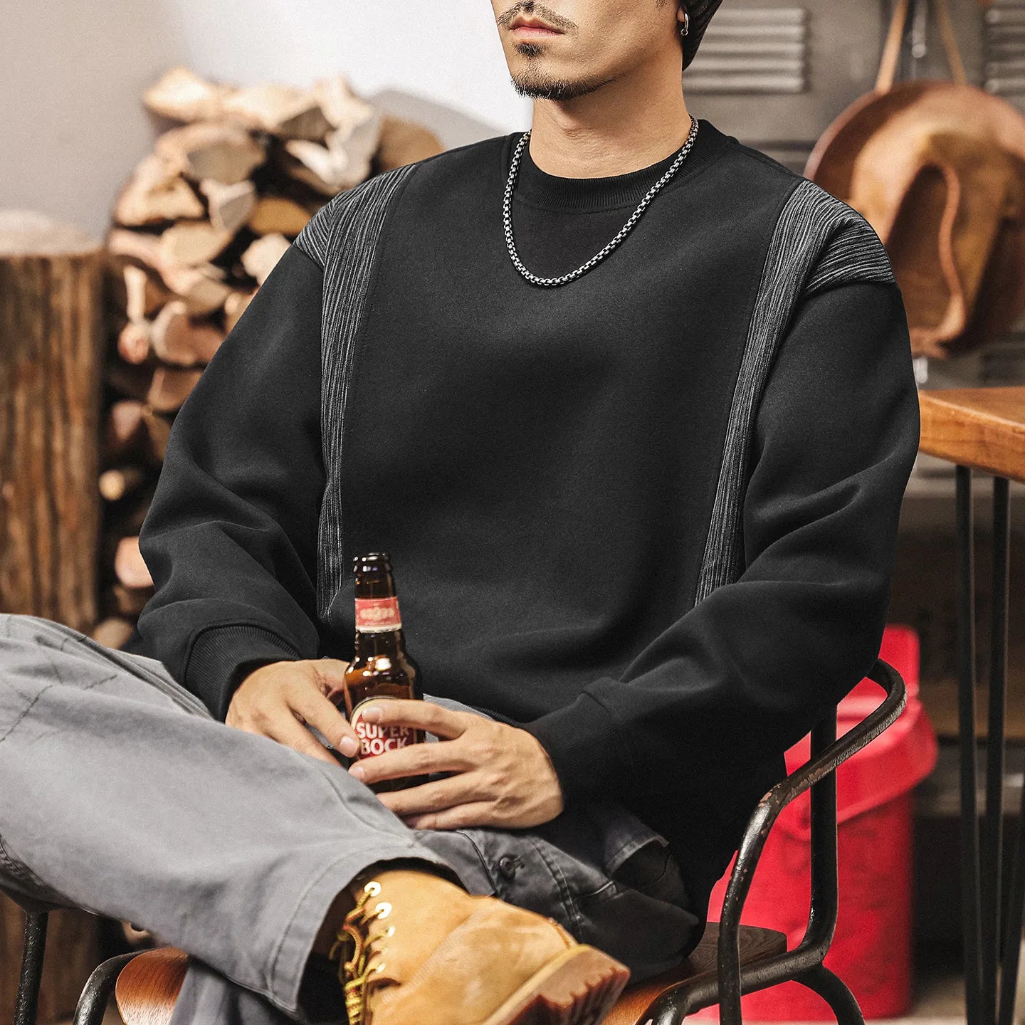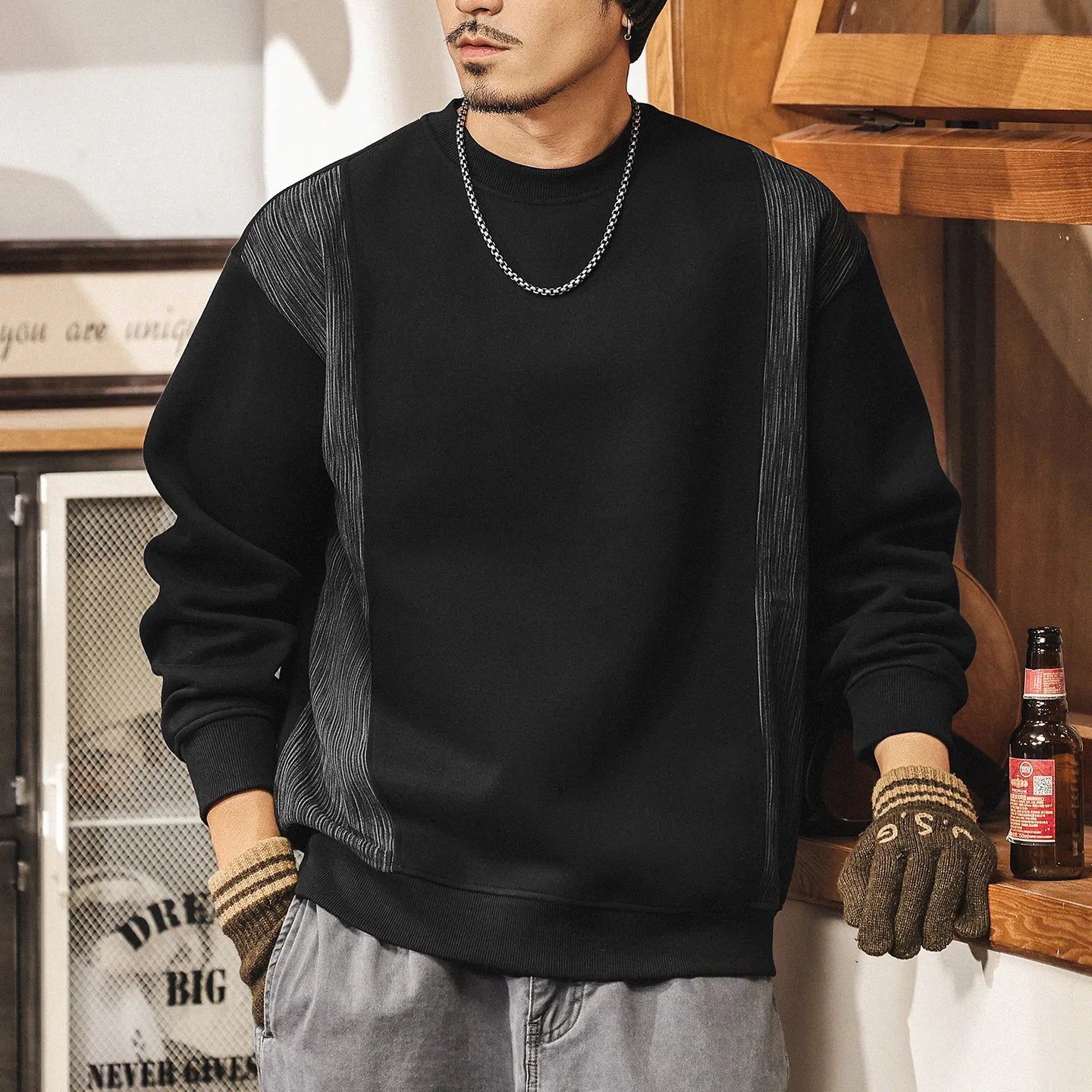 #JT-41350-ST#美式復古亨利領長袖t恤撞色男士上衣