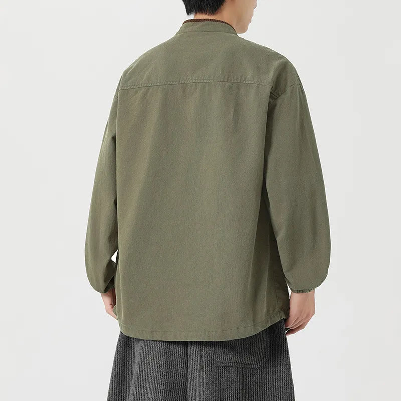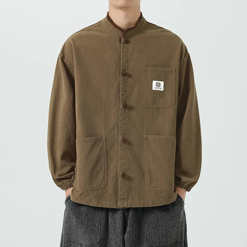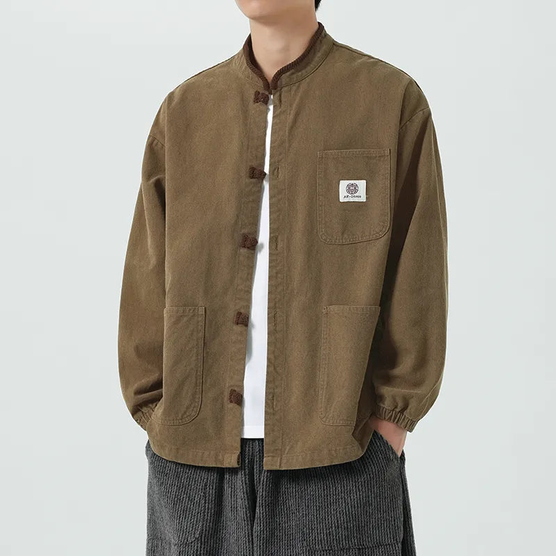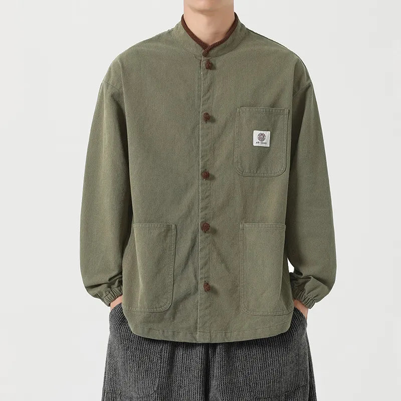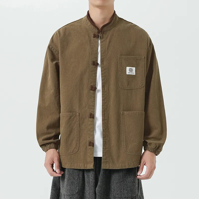 #M-JK69#寬鬆立領盤扣復古皮夾克
