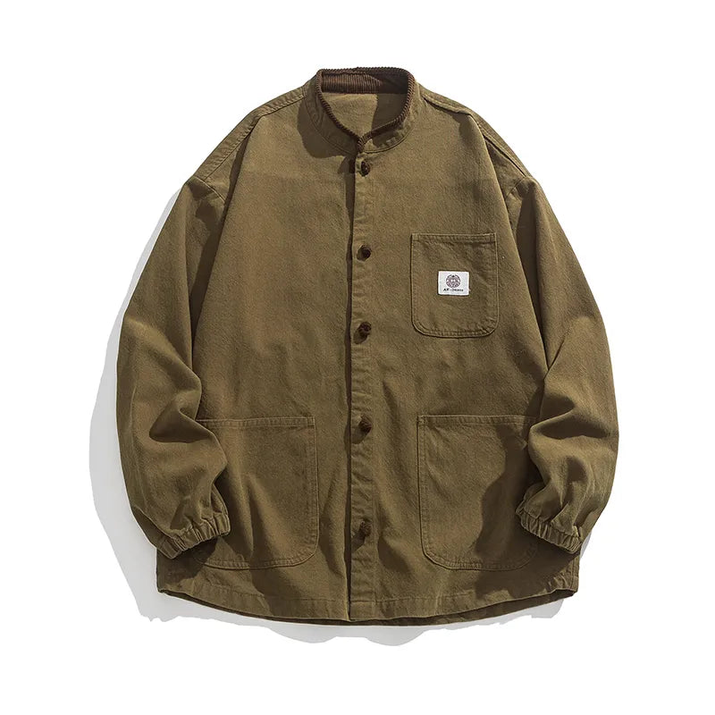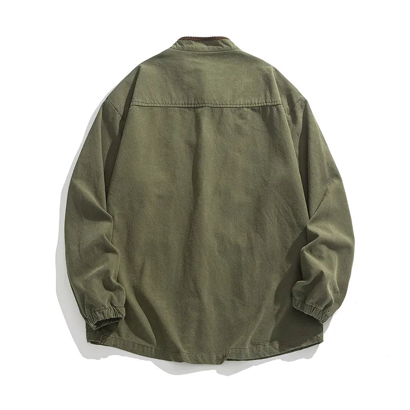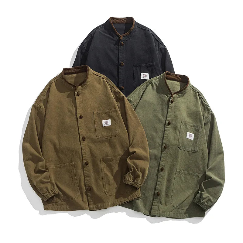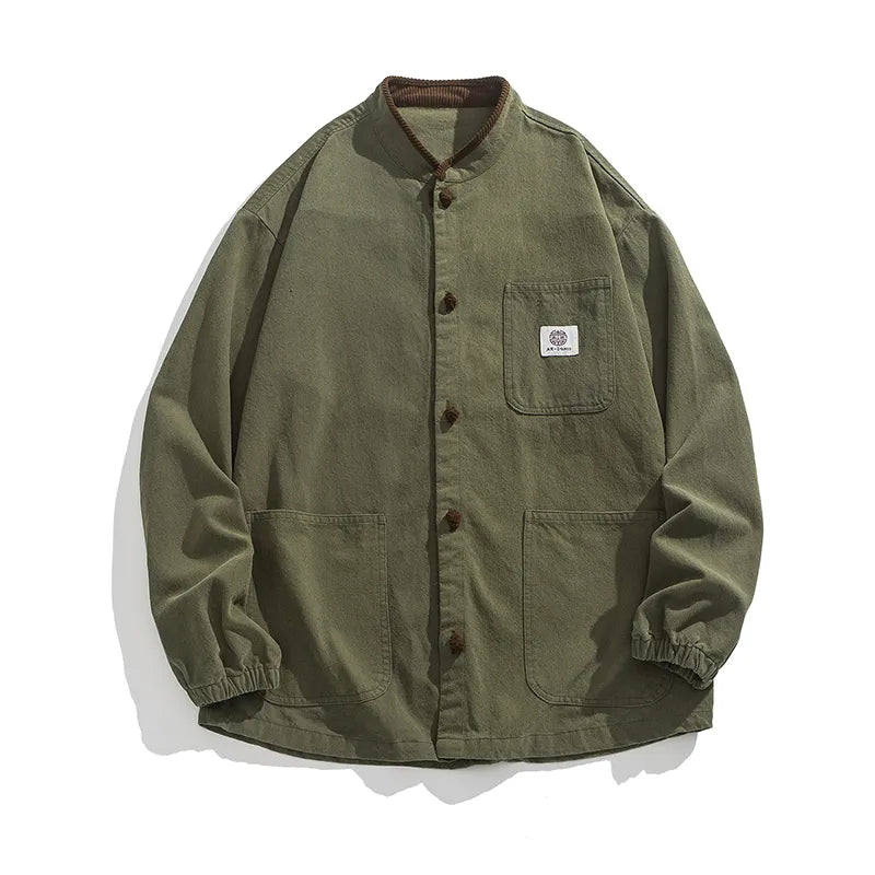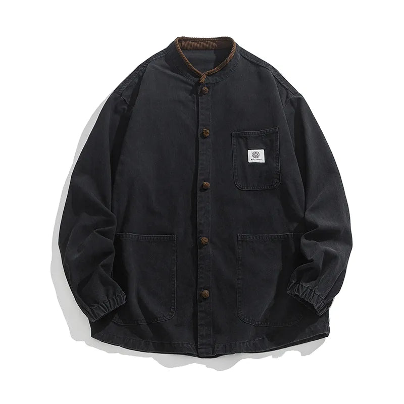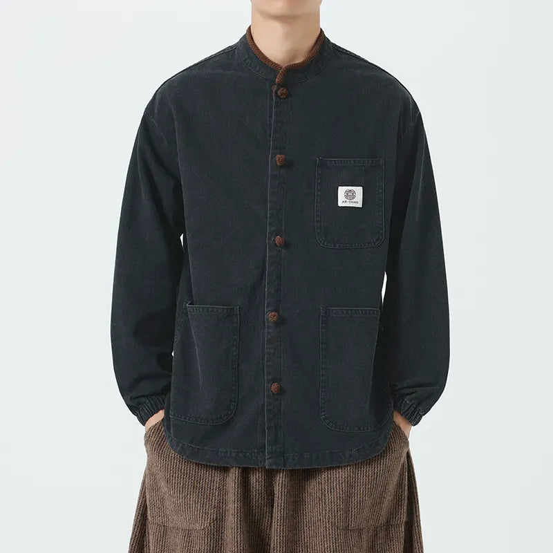 #M-JK43#做舊水洗布扣立領牛仔夾克