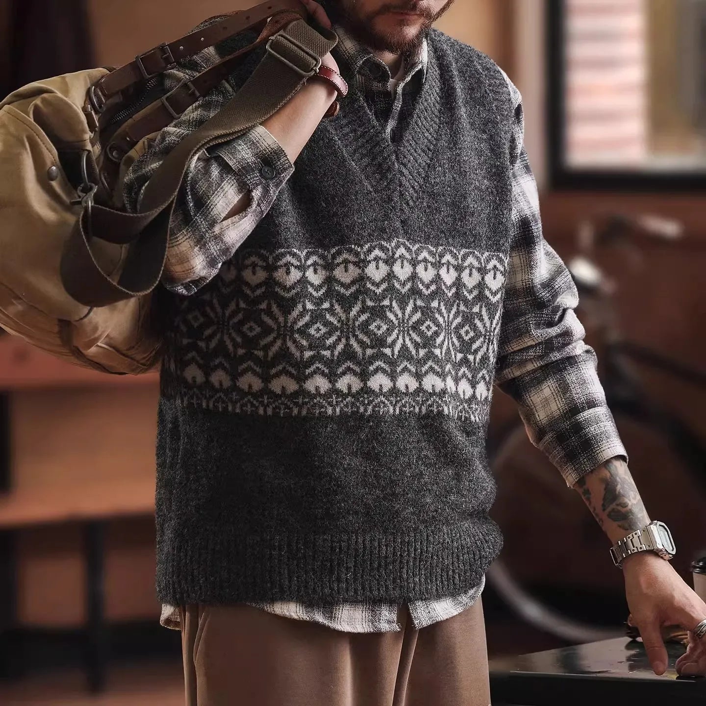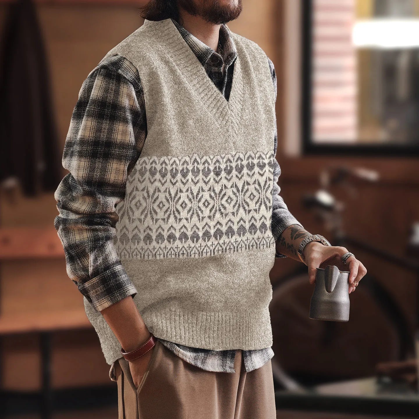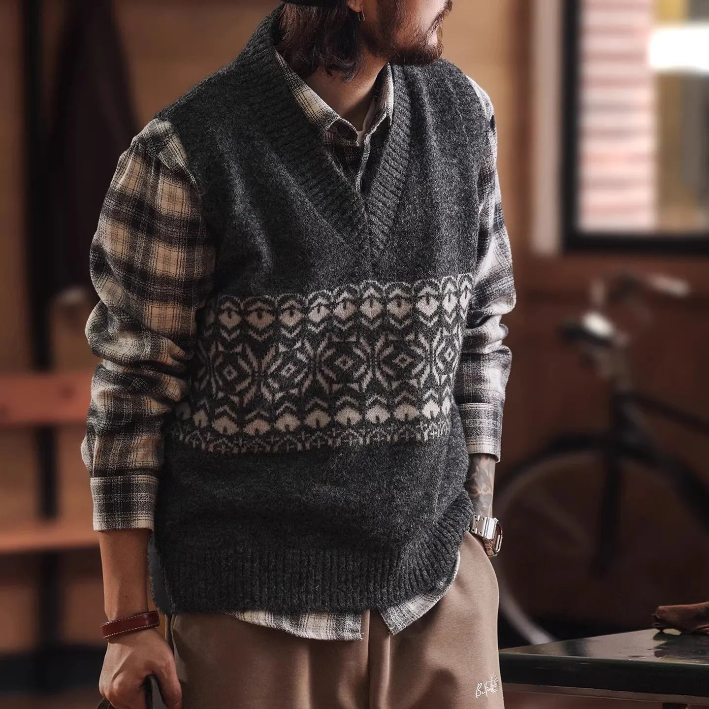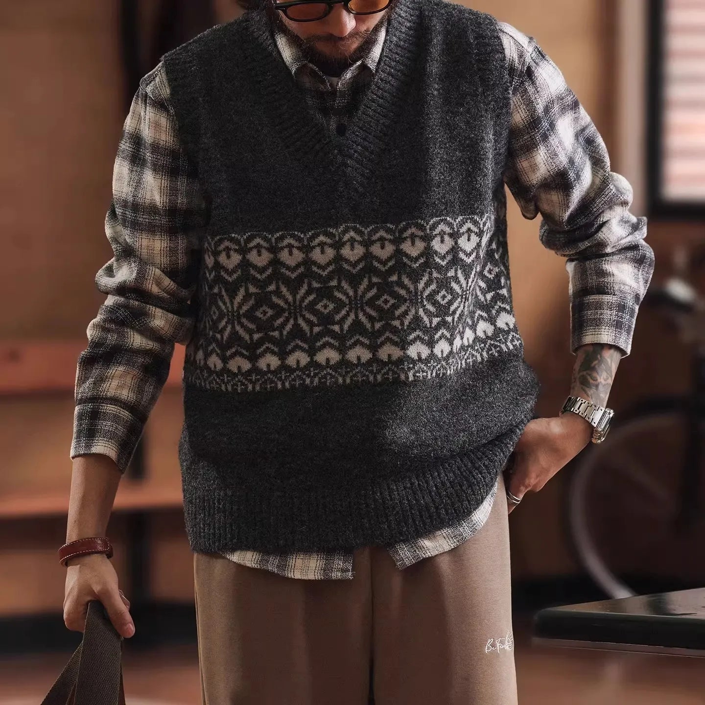 #XCM-MY5106-ST #American Style V-Neck Knit Vest Sweater