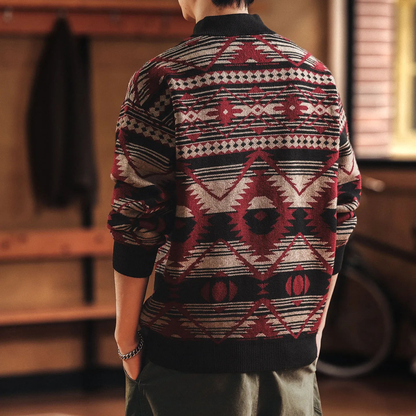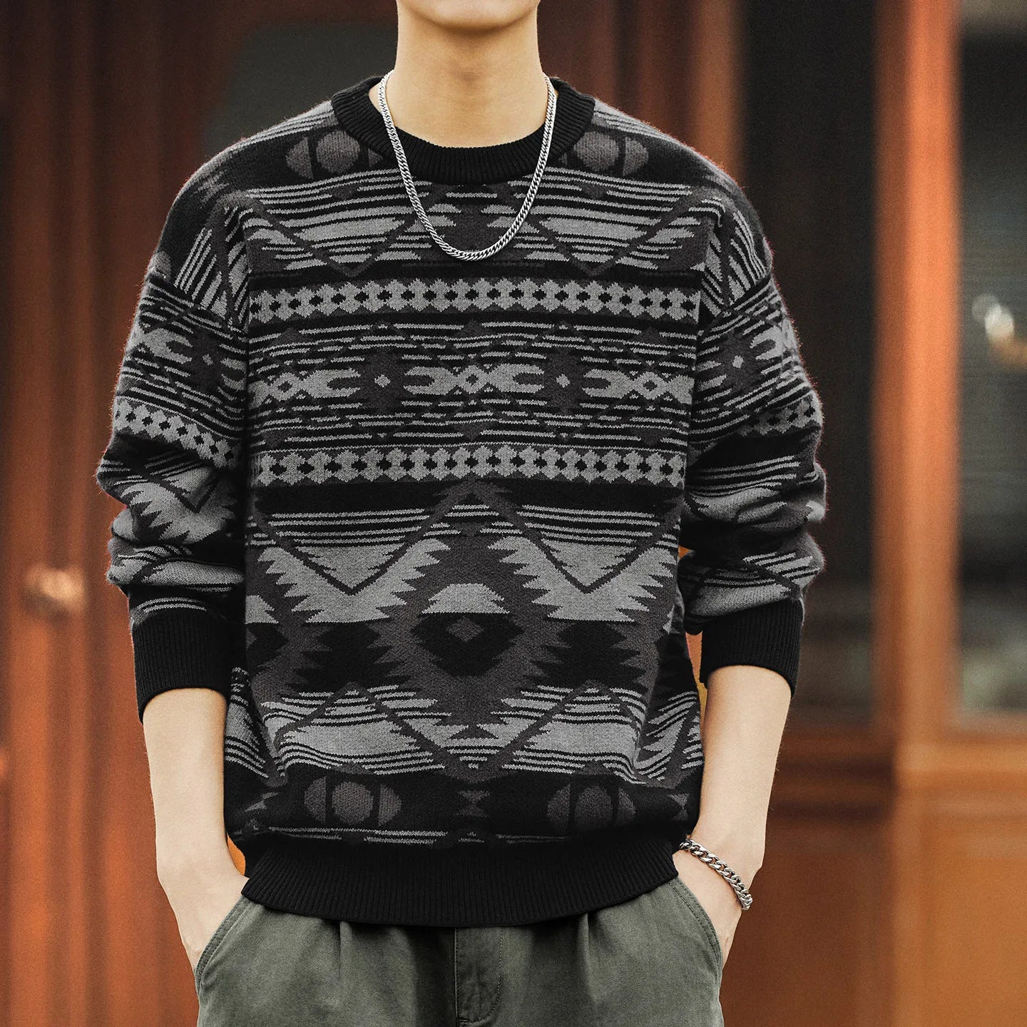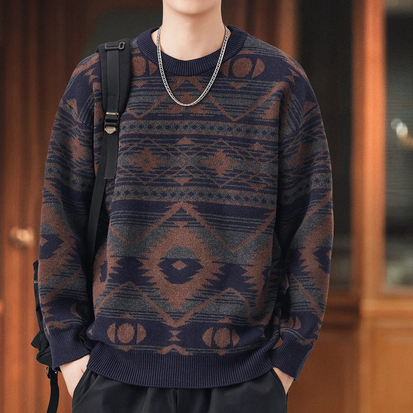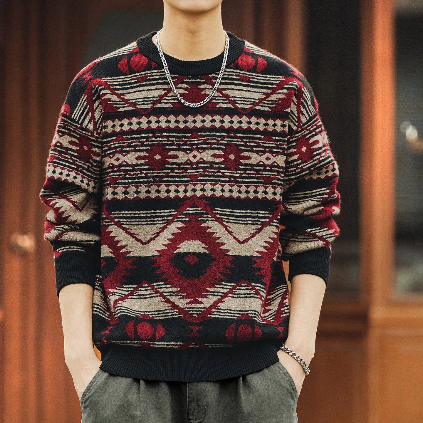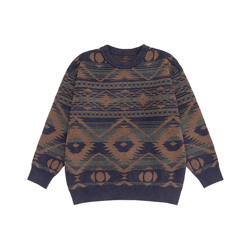 #XZ-JRMM554-ST# Men's American Vintage Fair Isle Ethnic Style Sweater