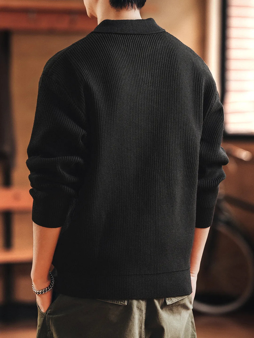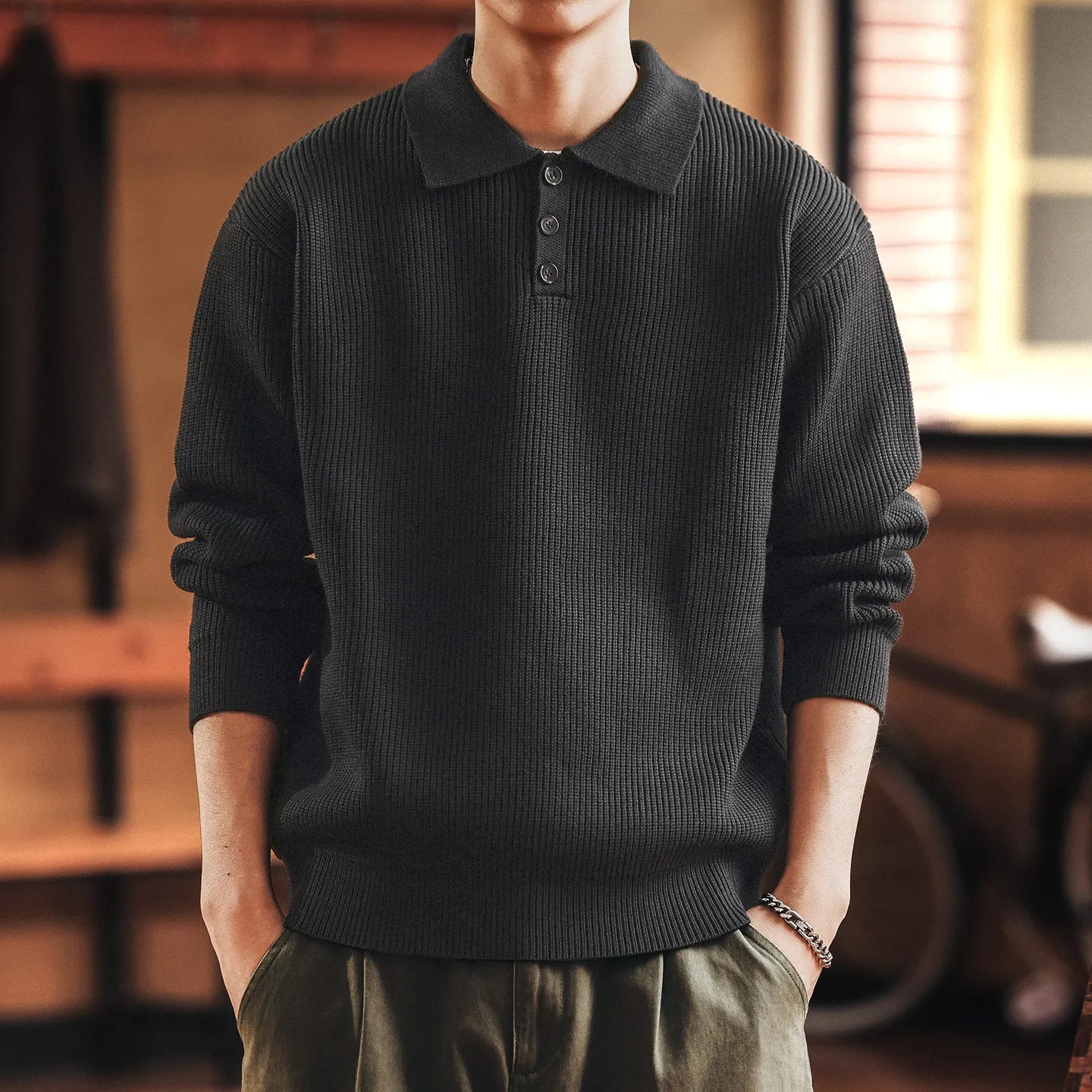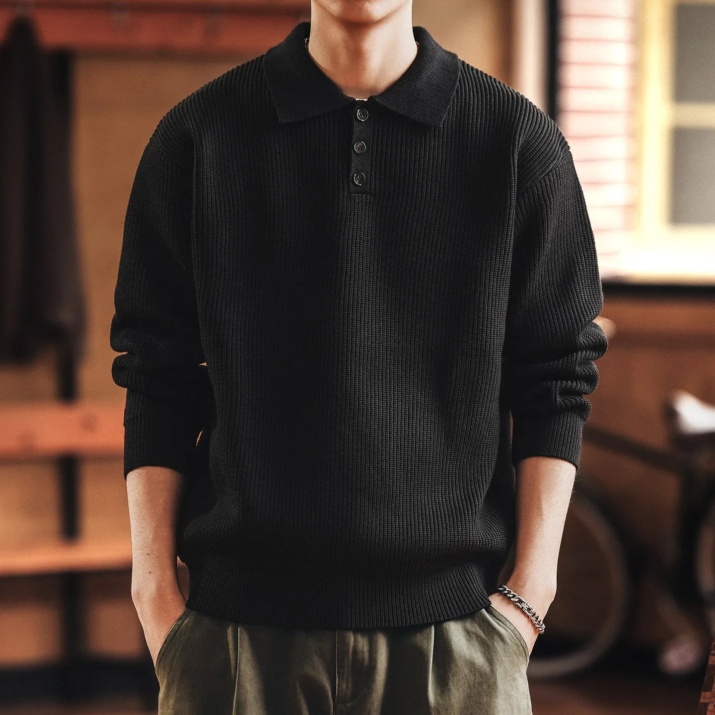 #XZ-WY9339-ST# American-style vertical stripe lapel polo sweater knitwear