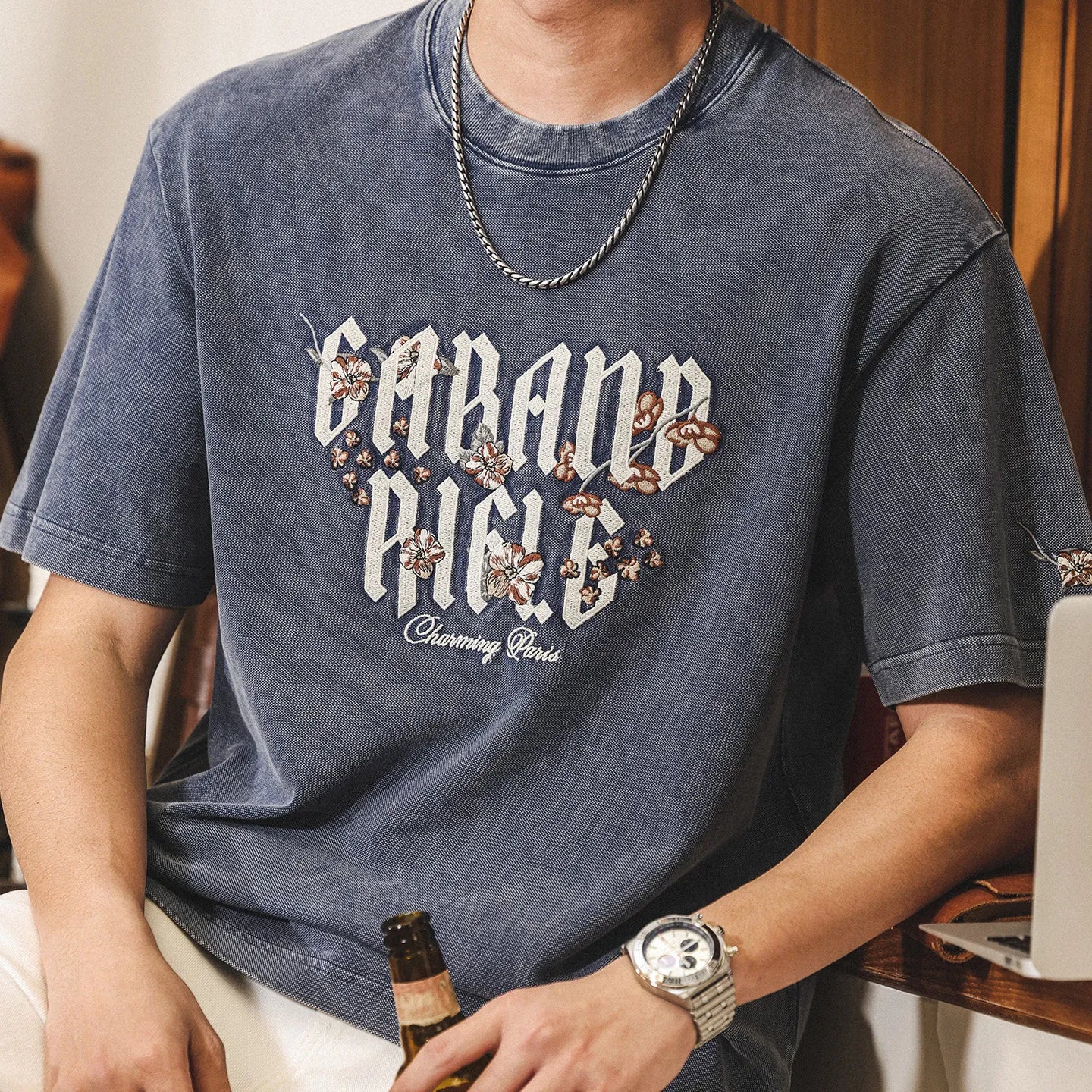 #BN-BNT8221-ST# American retro short-sleeved T-shirt