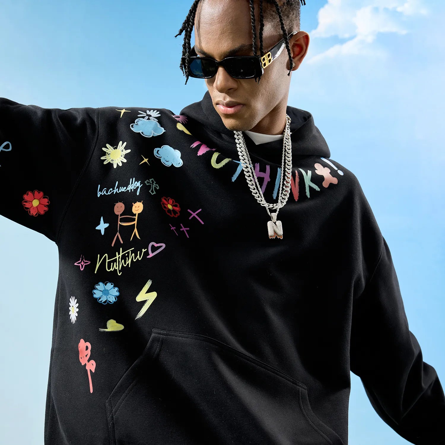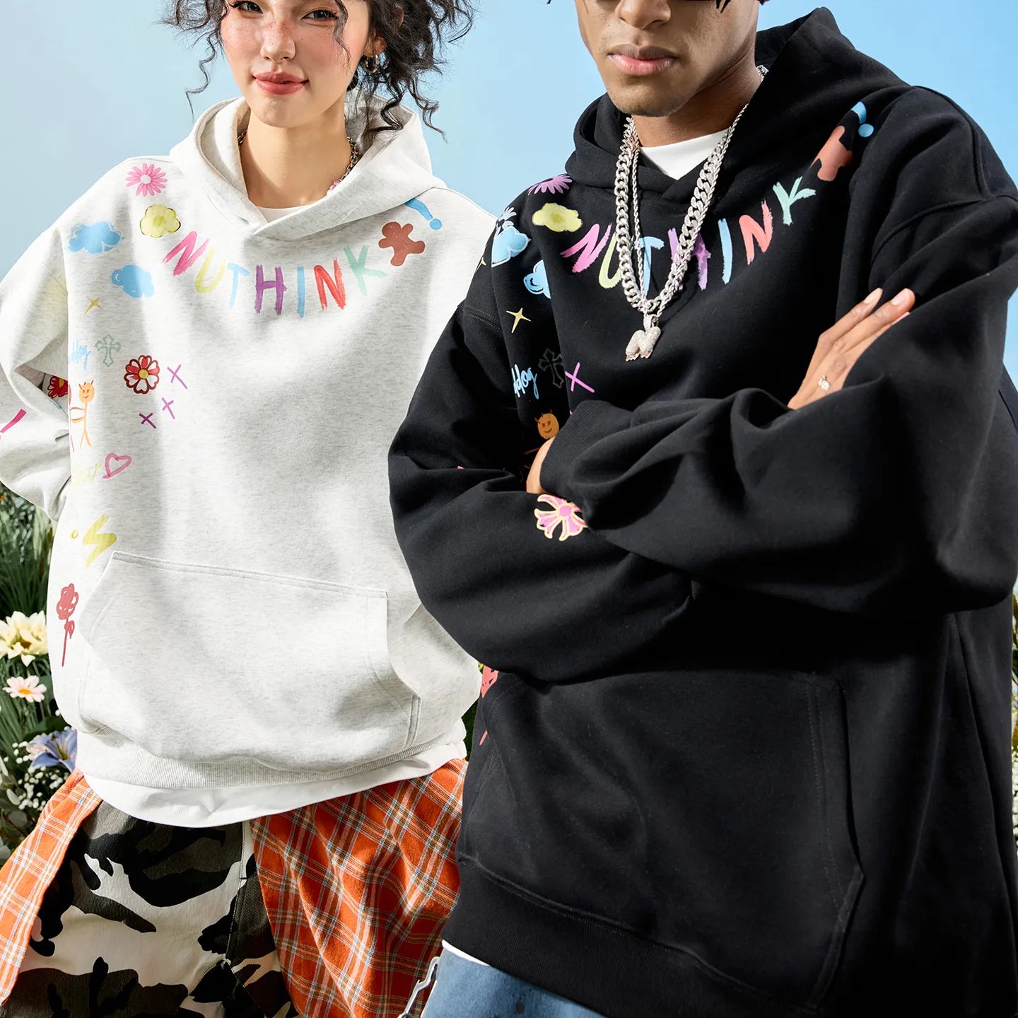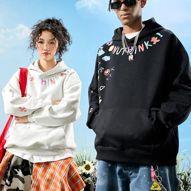#NT-E4832D601# Trendy American Graffiti hooded Sweatshirt