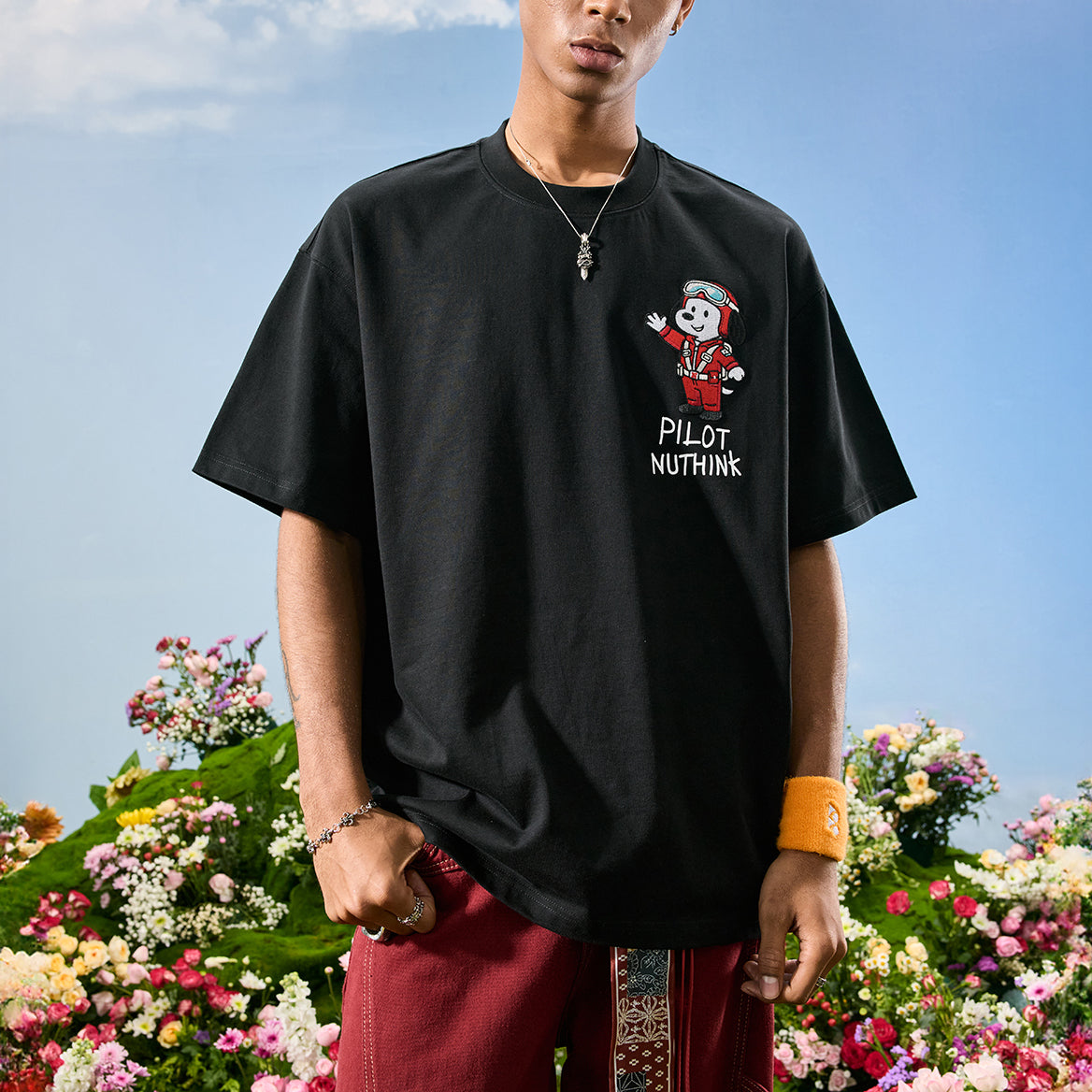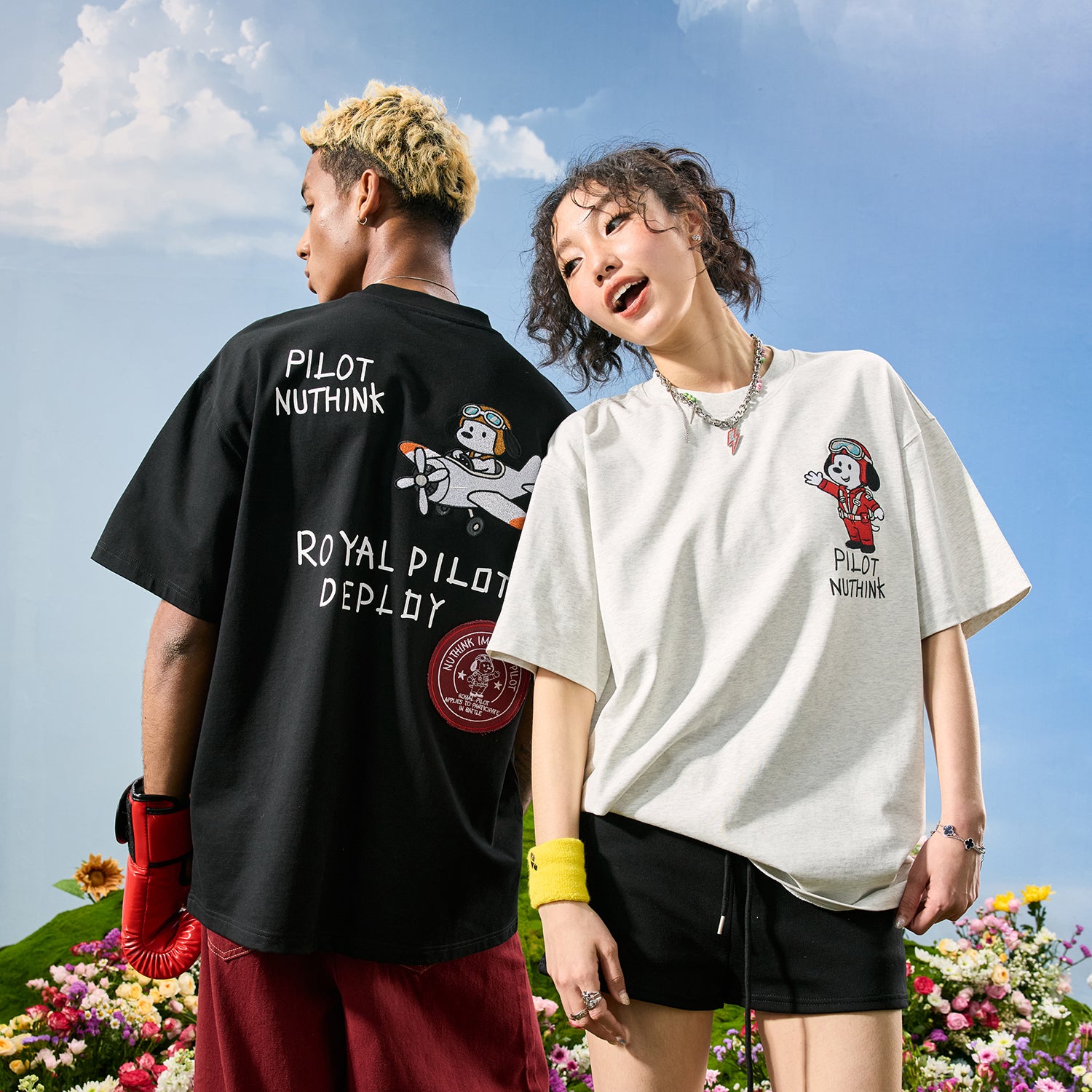 #NT-NU263# American streetwear brand embroidered puppy short-sleeved T-shirt