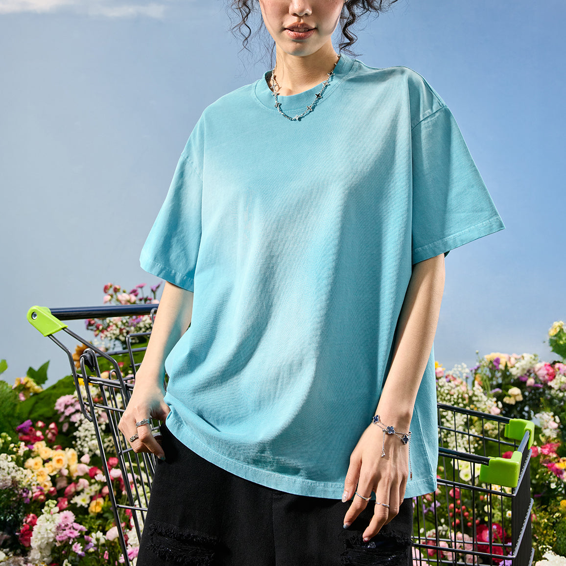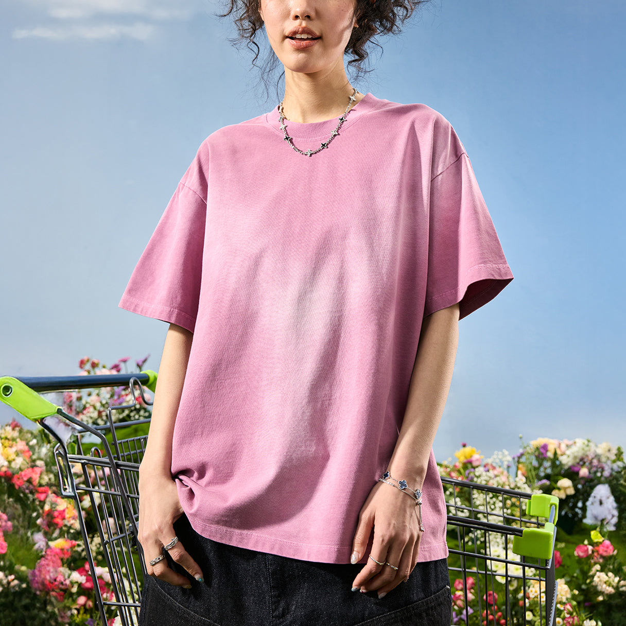 #NT-NU018# American retro pearl embroidery T-shirt