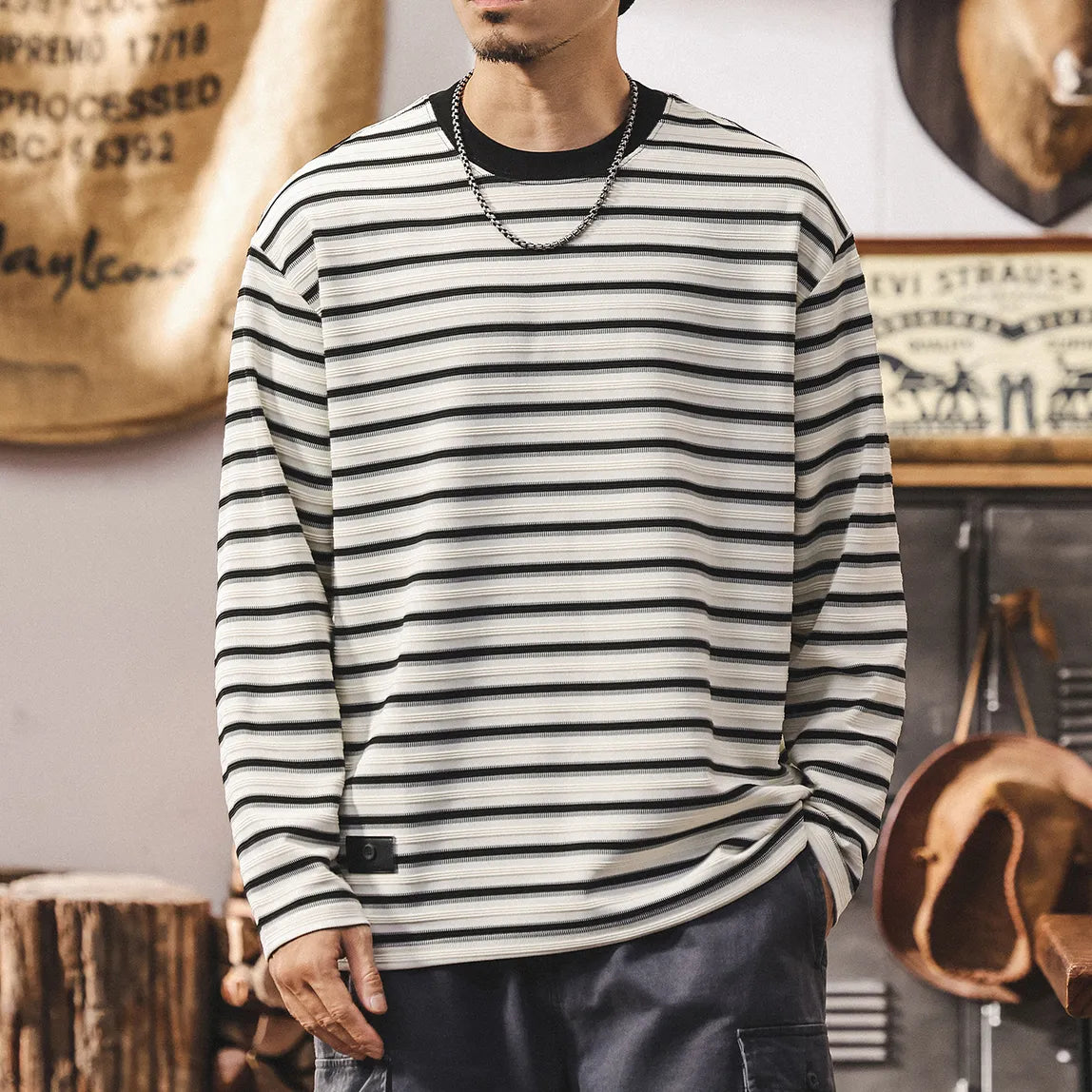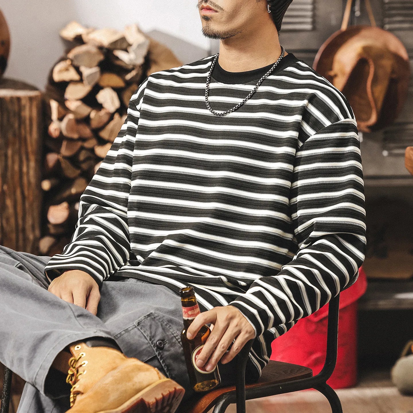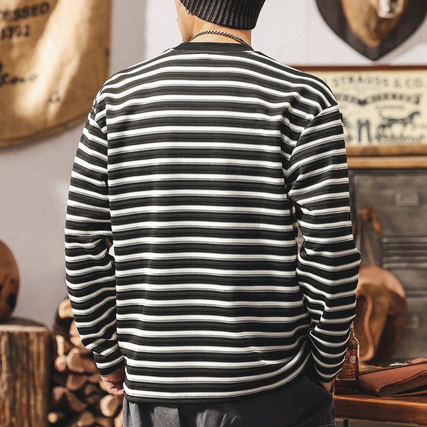 #XZ-MQ8905-ST# Striped long-sleeved T-shirt, three-dimensional loose top for men