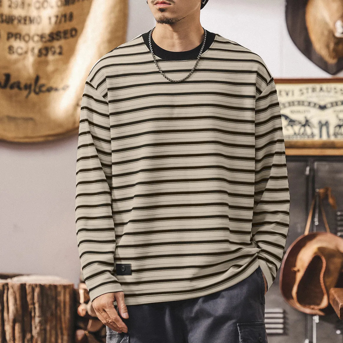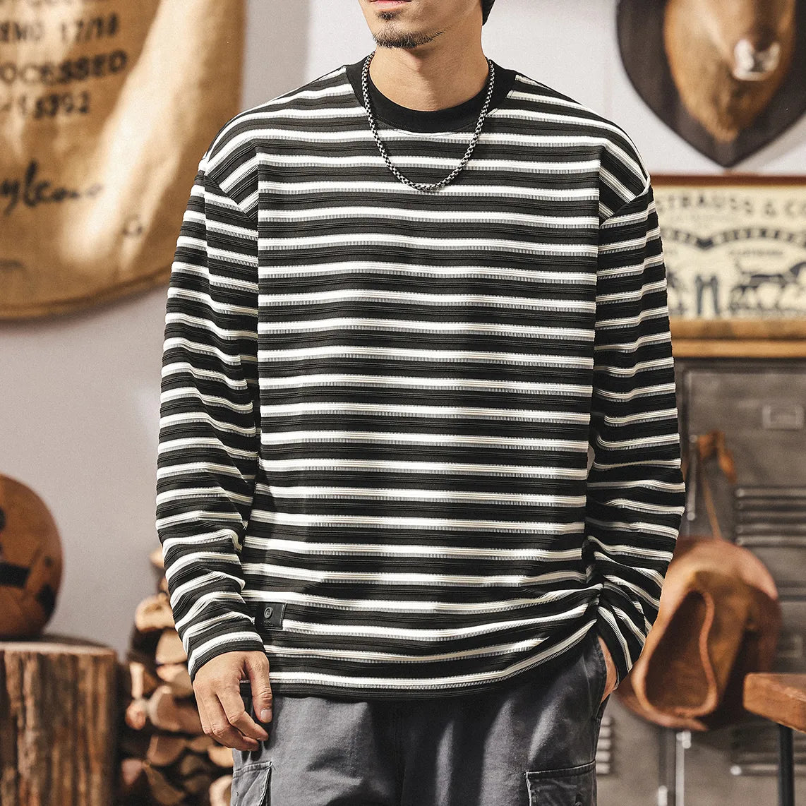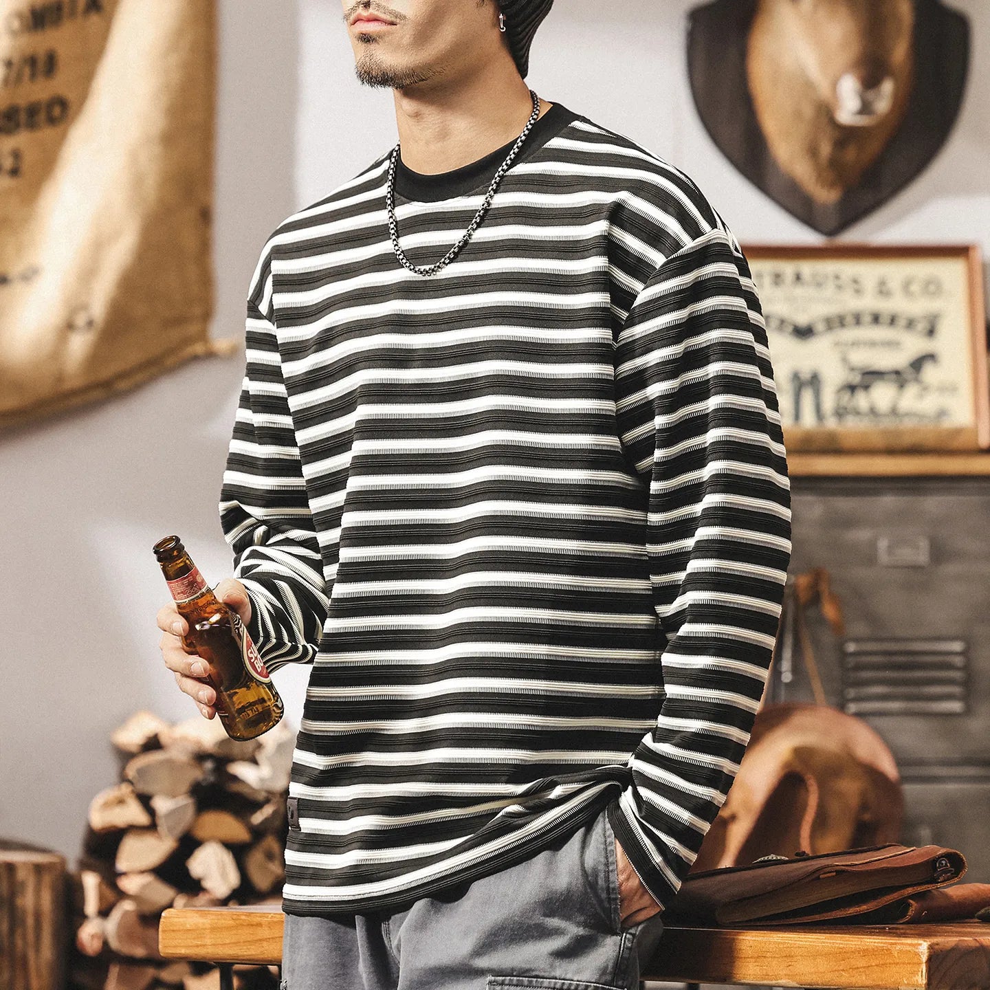 #XZ-MQ8905-ST# Striped long-sleeved T-shirt, three-dimensional loose top for men