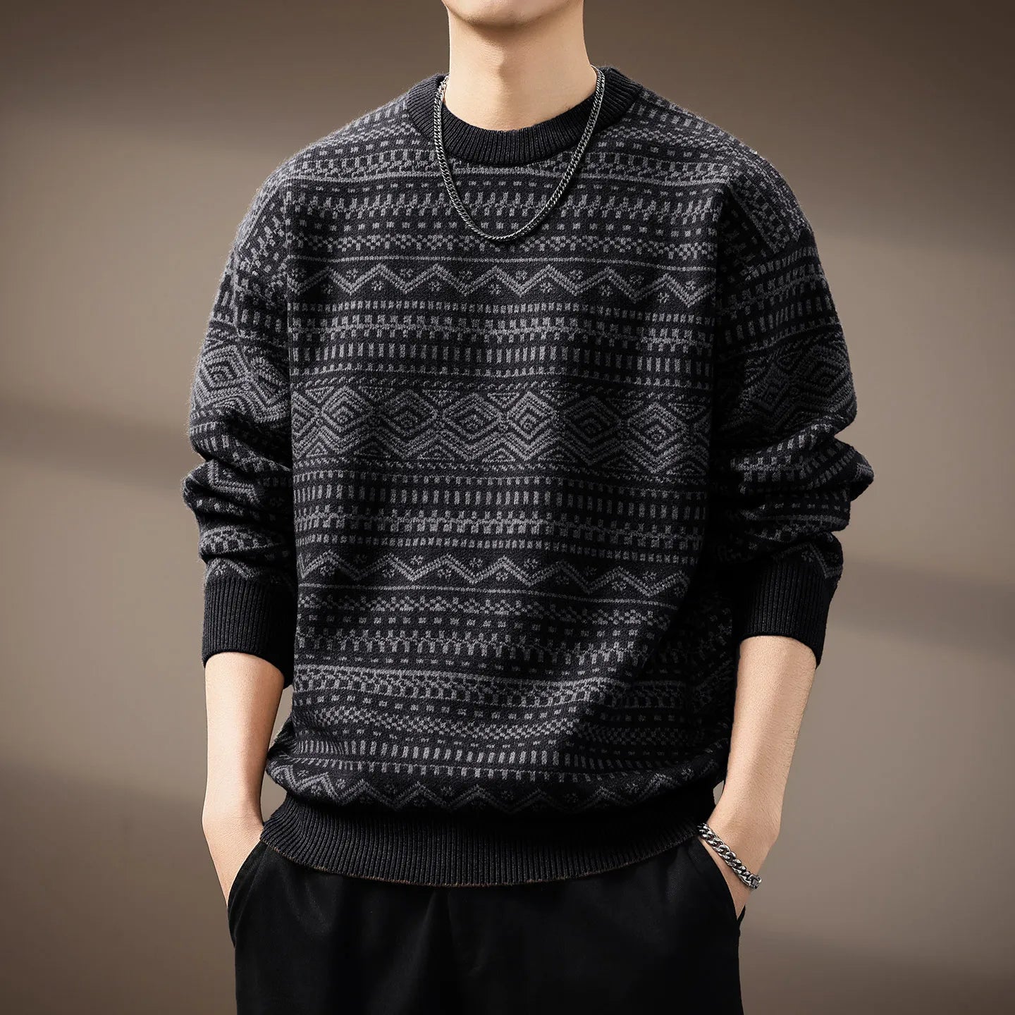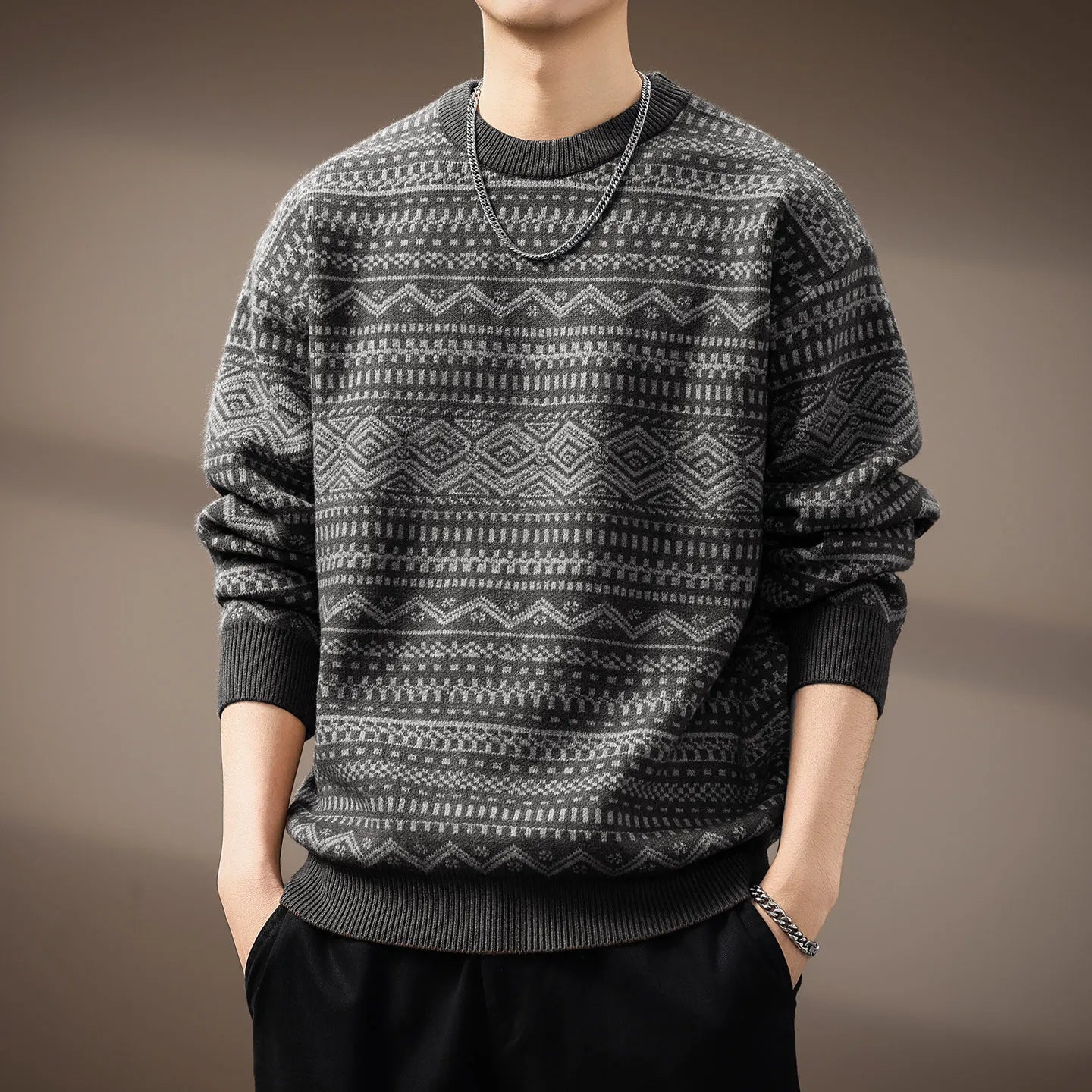 #XZ-JRMM567-ST# Men's American Vintage Fair Isle Ethnic Style Sweater