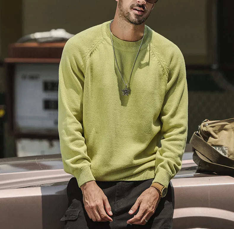 #Q1-8920-ST#美式復古寬鬆圓領針織毛衣